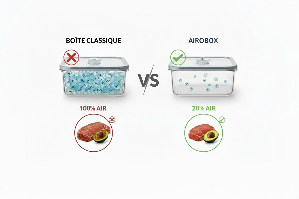 Conçue pour protéger vos aliments efficacement, la AiroBox combine étanchéité, sécurité et praticité. Plus de gaspillage, plus de fraîcheur, partout et tout le temps.